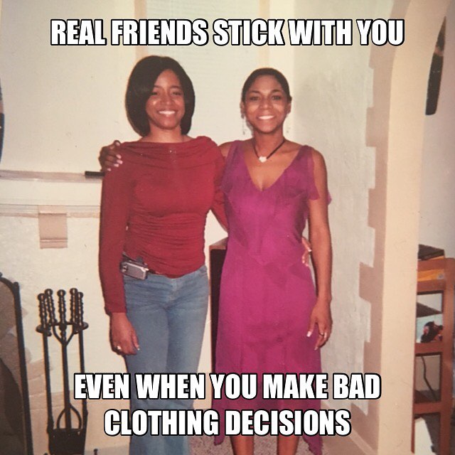 It’s so easy to make a snap judgement, based on what someone else thinks. Take the time to really get to know people. You might be missing out on a great relationship or opportunity because you were too focused on someone’s shoes, hair or clothing choice – all things that don’t really matter anyway. (Man, I used to love that purple dress…LOL!) #etiquette #hair #clothes #entrepreneur #image #friends