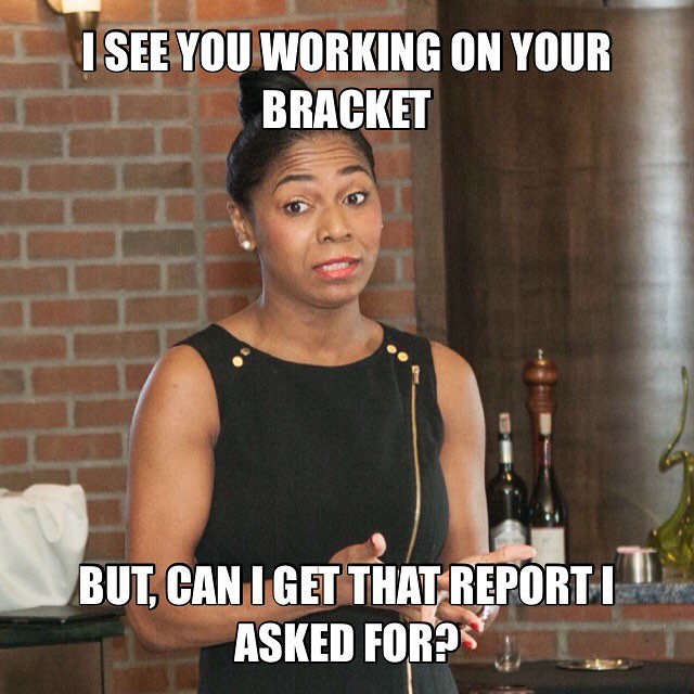 So, the #NCAA basketball bracket has been released. Please go ahead and participate if you wish, but are you spending your whole work day doing it, while missing deadlines and ticking off your co-workers? Lunch time is right around the corner… #etiquette #ncaa #bracket #basketball #corporate #entrepreneur #business #tpsreport